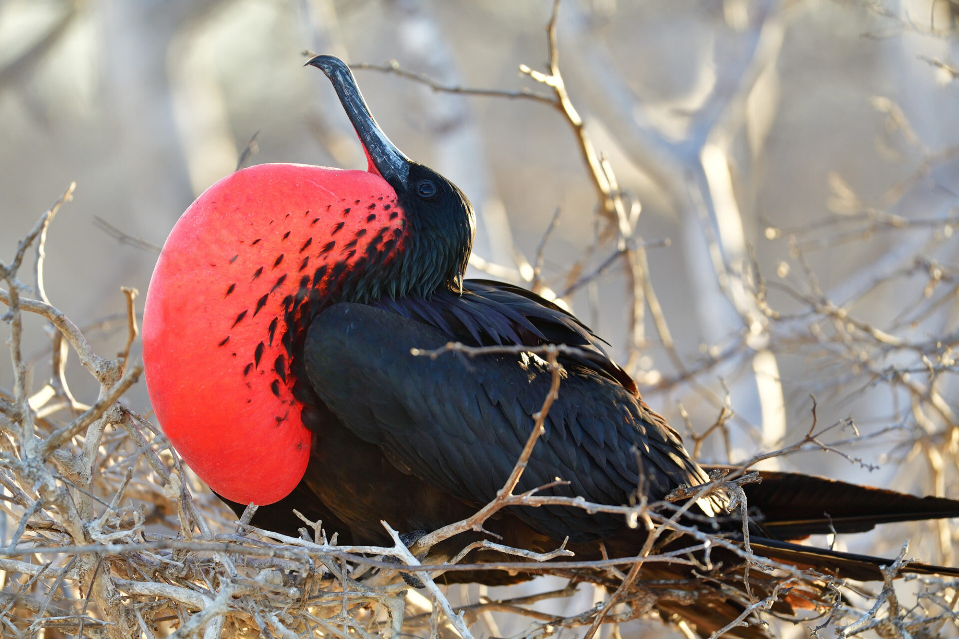 Walk among the largest blue-footed booby colony in the islands and witness frigatebird males displaying their red throat pouches. After a final morning of iconic Galápagos wildlife photography, return to the Samba for breakfast and check-out.